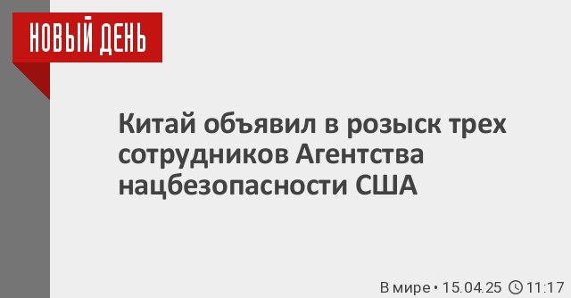 Китай объявил в розыск трех сотрудников Агентства нацбезопасности США