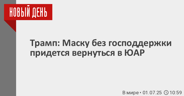 Президент США Дональд Трамп считает, что Илон Маск не сможет обойтись без государственных субсидий, ему придется «прикрыть лавочку и вернуться домой в ЮАР». Так американский лидер отреагировал на заявления Маска с критикой нового законопроекта.