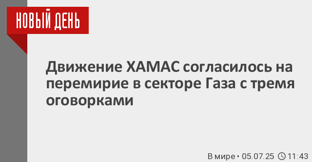 «Движение представило свой ответ братским посредникам, который характеризовался позитивным настроем. Оно полностью готово со всей серьезностью немедленно приступить к новому раунду переговоров о механизме реализации этих рамок», – говорится в распространенном заявлении ХАМАС, которое цитирует «Интерфакс».