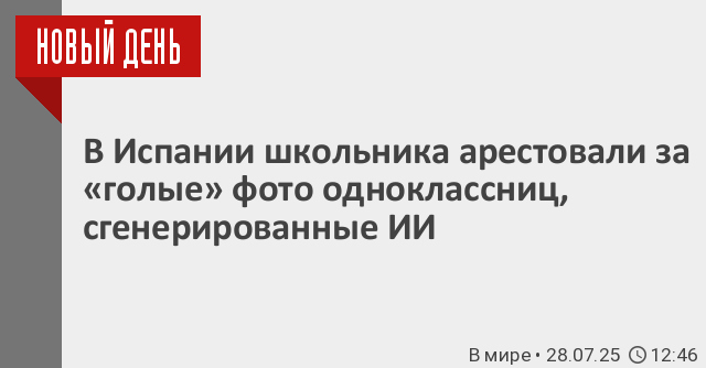 В Испании арестовали школьника, который с помощью нейросети «раздевал» своих одноклассниц на фото. Подростка обвиняют в распространении порнографических материалов с участием несовершеннолетних.