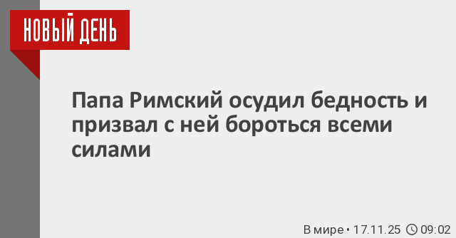 В воскресенье, 16 ноября, в Риме Папа Римский Лев XIV осудил бедность, призвав мировых лидеров и католиков оказать помощь обездоленным людям во время «Юбилея бедных».