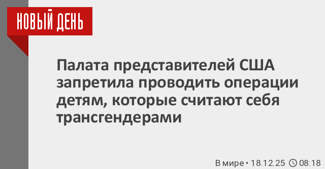 Законопроект, инициированный радикальной правой конгрессменкой Марджори Тейлор Грин, был принят 216 голосами «за» и 211 «против» и теперь направляется в Сенат. «Этот важный законопроект (...) положит конец калечащим операциям на женских половых органах и химической кастрации детей», – заявила Грин в среду в Палате представителей.