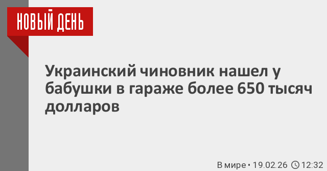 На Украине чиновник объяснил появление у него более 650 тысяч долларов тем, что нашел их в гараже, доставшемся ему в наследство от бабушки. Об этом сообщают СМИ со ссылкой на отчет Национального агентства по предотвращению коррупции (НАПК).