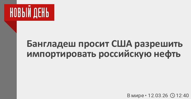 Власти Бангладеш обращаются к США с просьбой разрешить импортировать нефть из России. Страна испытывает нехватку топлива из-за конфликта на Ближнем Востоке.