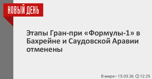 Этапы Гран-при «Формулы-1» в Бахрейне и Саудовской Аравии, которые должны были состояться в апреле 2026 года, отменены из-за войны на Ближнем Востоке. Об этом сообщается на сайте Международной автомобильной федерации (FIA).