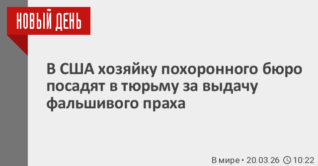 В США владелицу похоронного бюро обвинили в мошенничестве. Родственникам покойных вместо праха выдавали цементную смесь. Об этом сообщает телеканал CNN.