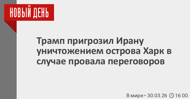 Президент США Дональд Трамп выдвинул жесткий ультиматум Ирану, пригрозив уничтожением всех электростанций, нефтяных скважин и стратегически важного острова Харк, на котором расположена нефтяная экспортная инфраструктура, в случае провала переговоров о прекращении войны.