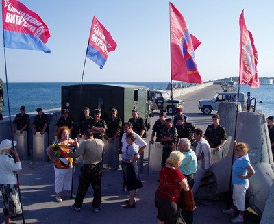 Он сообщил, что сегодня утром на молу на входе в Севастопольскую бухту планировалась акция протеста – «растянуть огромный плакат с лозунгами против захода кораблей НАТО».