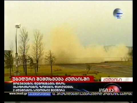 Момент подрыва монумента высотой 46 метров в Кутаиси – втором по величине городе Грузии. Кадр телеканала Рустави-2