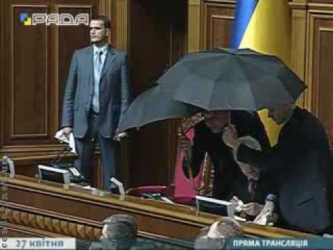 После того, как спикер украинского парламента Владимир Литвин появился в сессионном зале Рады, в него со стороны представителей оппозиции полетели яйца. Охранники Литвина, защищая председателя Рады, сразу же раскрыли зонтики, но несколько «снарядов» все же попали в лицо спикеру.