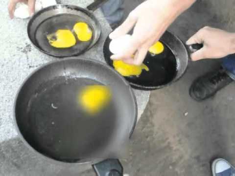 Судя по видео, участникам удалось приготовить яичницу на Вечном огне – никто из них не был задержан милицией, обычно дежурящей в парке.