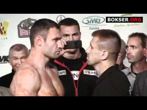 Сегодня вечером в польском Вроцлаве состоялась официальная церемония взвешивания участников завтрашнего вечера бокса, главным боем которого станет поединок чемпиона WBC в супертяжелом весе 40-летнего украинца Виталия Кличко (Украина) с 34-летним претендентом поляком Томашем Адамеком. Об этом сообщает allboxing.ru.