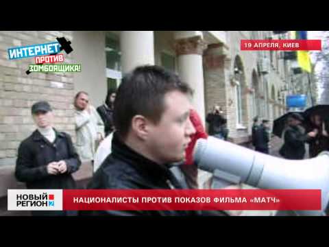 «Сегодня мы пикетируем Государственное агентство Украины по вопросам кино в связи с тем, чтобы агентство не выдавало прокатное удостоверение русскому фильму «Матч». Мы считаем, что этот фильм разжигает межнациональную вражду, этот фильм показывает украинцев в неуважительном ракурсе, этот фильм перекручивает исторические факты, хотя написано, что он снят на реальных событиях», – рассказал корреспонденту «НР» Александр Оронец – активист киевской «Свободы», один из активных участников нападения на крестный ход и разгон «Русского марша» в Киеве 4 ноября 2011 года почти на том самом месте, где проходило сегодняшнее собрание-митинг.