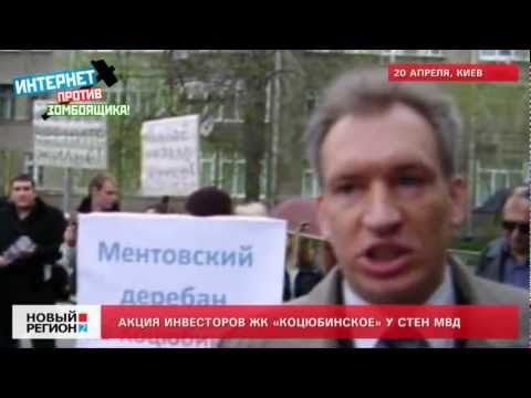 В Киеве возле здания МВД Украины в пятницу прошел митинг инвесторов жилищного комплекса «Коцюбинский», которые обвинили застройщиков в махиниациях, а власти – в покрывательстве преступлений.