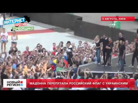 Американская певица Мадонна перепутала российский флаг с украинским.