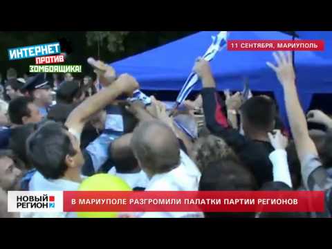 «Мариуполь, 9 сентября, День освобождения Донбасса. Палатки просто разрывают за бесплатные зонтики с символикой Партии регионов. Алчности нет предела», – комментирует происходящее автор видеоролика.