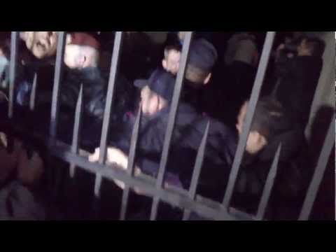 Пока толпа отходила от слезоточивого газа, силовики посадили Балагура и Онуфриива в машину и пытались их вывезти. Но толпа не дала им этого сделать, силовики укрылись в арке одного из домов и закрылись решеткой, отбиваясь газом. Люди выломали решетку, однако освободить задержанных не смогли.