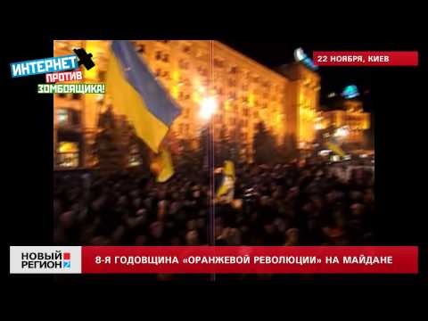 Вечером в четверг на Майдане в центре Киева собралось около 700 человек на празднование восьмой годовщины «оранжевой революции».