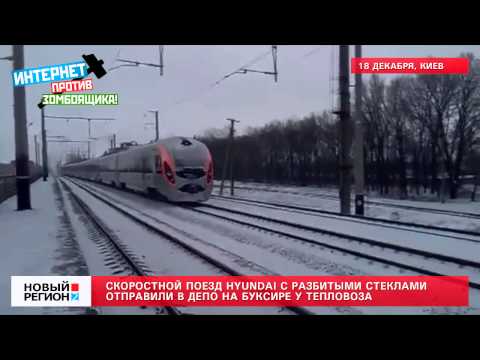 Скоростные корейские поезда «Хюндай» в очередной раз оказались в эпицентре громкого скандала. В Интернете появился видеоролик, на котором изображено, как обычный тепловоз переправляет в депо один из «замерзших» «Хюндаев», предположительно снятый с маршрута «Киев – Донецк» вблизи станции Гребинка.