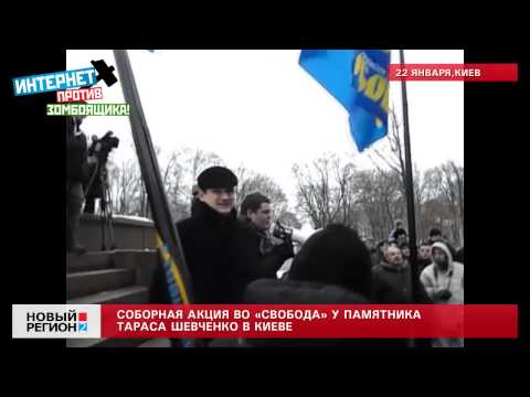 В 11 часов утра у памятника Тарасу Шевченко и Михаилу Грушевскому собрались две сотни представителей оппозиции. Лидеры скромно возложили маленькие букетики цветов к подножию монументов. У стоявших здесь венков ленточку с именем Януковича перевернули лицом вниз.