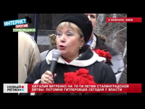 «Позором нашей страны является, что Янукович, этот несчастный, ущербный Янукович не поздравил Путина, не поздравил Россию с великой датой – 70-летием победы под Сталинградом! Это их цена – цена нацистов и неонацистов, цена украинских гитлеровцев. Но я верю, что будет «второй Сталинград» в Украине. И мы объединимся, обязательно объединимся против всей этой западной, американской, бандеровской нечисти, потому что в наших жилах кровь наших предков, в наших жилах – кровь народа-победителя, в наших жилах кровь Сталинграда», – добавила Витренко.