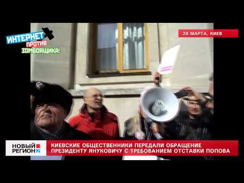 Они развернули плакаты: «Попова – в отставку!», «Не дадим грабить Киев!», «Киев – чистый город, Попов его засоряет грязными делами», «Вон, нечисть из Киева», «Попова – мэром в Межгорье!».