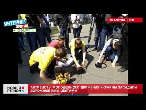 Молодые люди выставили предупреждающий плакат с надписью «укр яма», демонстрировали лозунг: «Пришла весна, пірнули в «пакращення» (известный каламбур Николая Азарова о сегодняшнем улучшении жизни на Украине), а также плакат, на котором дорожный рабочий зашивает проезжую часть дороги ниткой и иголкой.