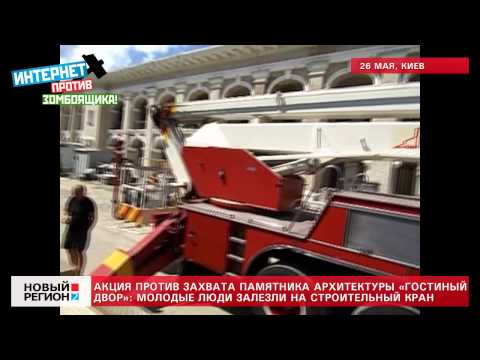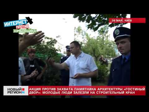 Четверо смельчаков пошли на отчаянный шаг. Журналистка Татьяна Чорновил, правозащитник Игорь Луценко и активистки Мария Лебедева и Евгения Закревская с целью блокирования реконструкции Гостиного двора на Подоле залезли на башенный кран. Они несколько часов без воды находились на высоте более 40 метров. Одна из активисток была в футболке с портретом украинского президента и подписью «Победим мафию!».