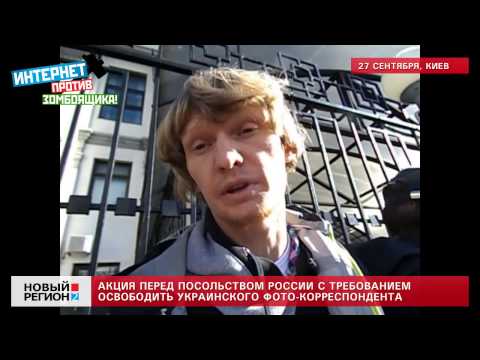 «Ребята, есть, кто знал Синюкова? Я только его работы видел. Мы хотим поддержать нашего коллегу-фотографа Дениса Синякова. На его месте мог оказаться каждый из нас. За профессиональную деятельность человека, за то, что он занимается журналистикой, снимает, фактически то, что интересует многих людей – его просто арестовали, так же, как обычного активиста, не смотря на то, что он является фотографом. Посольство в Киеве выступает в качестве представителя РФ, и мы требуем от Российской Федерации освободить фотографа и не применять к нему санкции как к обычному активисту», – сказал Левин.