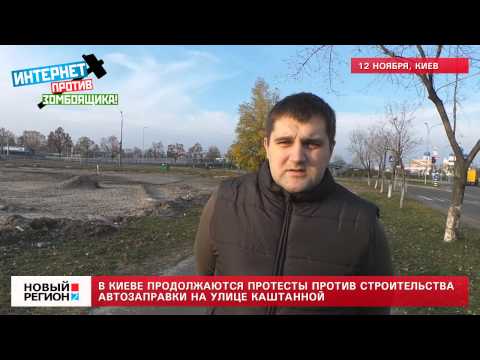 В Деснянском районе Киева на улице Каштанной продолжаются акции протеста против незаконной стройки АЗС прямо под окнами жилых домов.