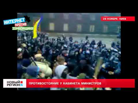 Оппозиция в центре Киева предприняла попытку третьего прорыва к зданию Кабмина Украины, вступив в столкновение с кордоном бойцов «Беркута».