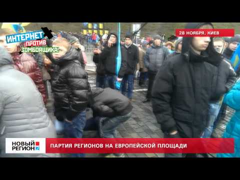 На Европейской площади в Киеве, в нескольких сотнях метров от оппозиционного митинга на Майдане, правящая Партия регионов согнала около 5 тысяч человек на митинг в поддержку руководства Украины, которое сегодня на саммите в Вильнюсе не подписало соглашение об ассоциации с Евросоюзом под предлогом экономической невыгодности этого документа.