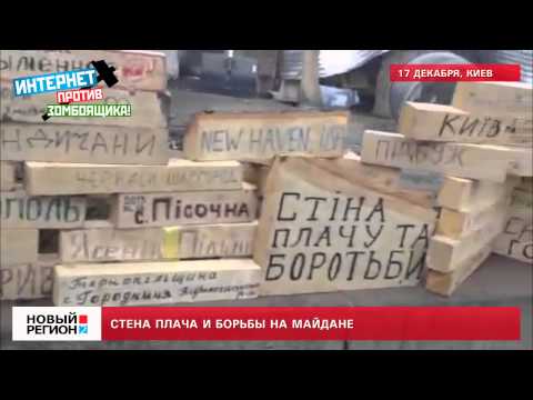 На Майдане появилась новая достопримечательность – Стена плача и борьбы. Это изгородь из сотен деревянных брусков, на каждом – название города Украины, из которого прибыли подписавшие его протестующие.