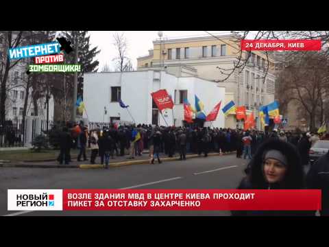 Возле здания МВД Украины в центре Киева проходит пикет за отставку главы силового ведомства Виталия Захарченко. Участники манифестации утверждают, что министр демонстрирует неспособность контролировать ситуацию в стране, подтверждением чему является избиение мирных митингующих на Майдане, нападения на оппозиционных активистов и журналистов.