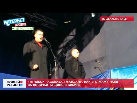 «Представитель спецподразделения, как эти «беркутята», только тогда с красной звездой на лбу, зашел в хату моей семьи и за косички мою 4-летнюю мать вытащил и запаковал в грузовик. А бабушка взяла склянку молока, чтобы дети, которых вывозят неизвестно куда, могли позавтракать. Но боец-молодец с красной звездой пнул своим сапогом и разбил это молоко. На 8 лет в Сибирь отправили мою семью! И поэтому я в политике. Я не хочу повторения этого! Я не хочу, чтобы всякие молодцы в погонах с красными звездами (а теперь у них тризуб) приходили и били наших детей, отправляли наших матерей в Сибирь!» – сказал Тягнибок.