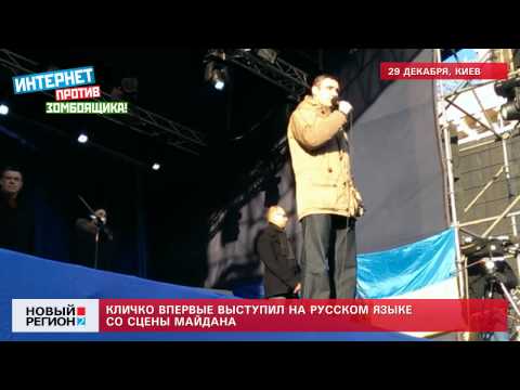 Виталий Кличко сегодня впервые озвучил большую часть своего выступления со сцены Майдана на русском языке.