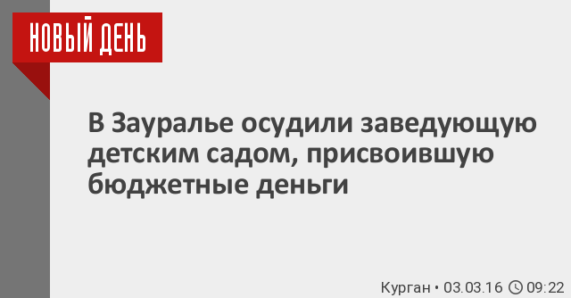 В Курганской области вступил в законную силу приговор Петуховского районного суда в отношении бывшей заведующей детского сада «Родничок» Галины Ждановой. Они признана виновной в совершении мошенничества с использованием служебного положения и служебном подлоге.