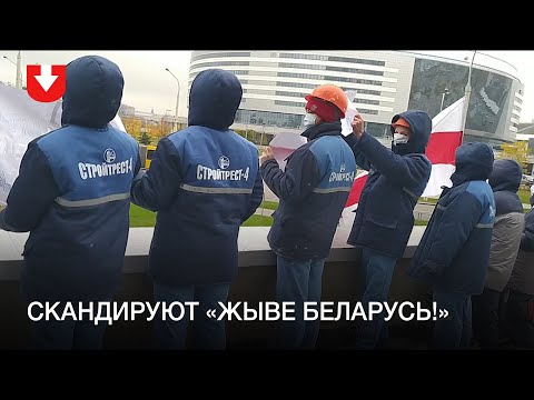Рабочие стройтреста №4 вышли на объект с бело-красно-белыми флагами оппозиции.