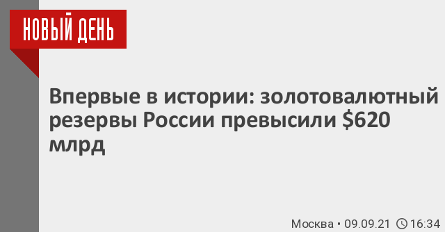 Золотовалютные резервы России обновили исторический максимум. На 3 сентября их объем составил $620,8 млрд, свидетельствуют данные Банка России.