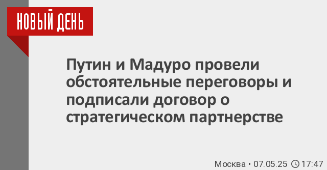 Сегодня в Москве президенты России и Венесуэлы Владимир Путин и Николас Мадуро провели обстоятельные переговоры подписали договор о стратегическом партнерстве и сотрудничестве двух стран. Лидеры государств поставили подписи под документом в торжественной обстановке в Малахитовом фойе Большого Кремлевского дворца.