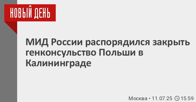 Как говорится в сообщении МИД России, решение принято в качестве ответной меры на отзыв польскими властями с 30 июня 2025 года согласия на функционирование Генерального консульства РФ.