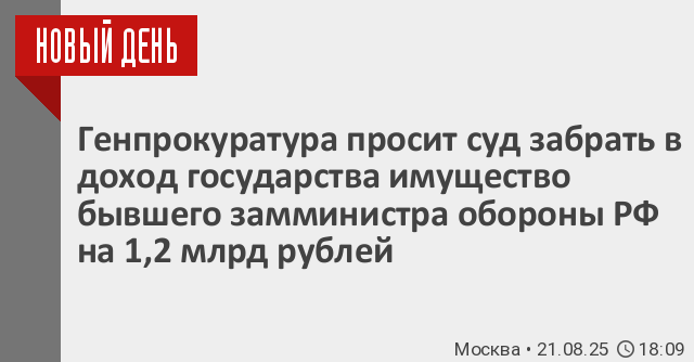 Генеральная прокуратура РФ просил Пресненский районный суд Москвы обратить в доход государства имущество бывшего замглавы Минобороны Тимура Иванова, осужденного за коррупцию, а также его родственников и близких, на сумму более 1,2 млрд рублей.