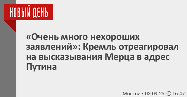 «Мерц допустил в последние часы очень много нехороших заявлений в отношении нашего президента. Поэтому вряд ли его мнение в настоящий момент можно принимать во внимание», – сказал Песков (цитата по ТАСС), комментируя слова Мерца о том, что Женева может стать переговорной площадкой по Украине. Канцлер также называл президента РФ «военным преступником».