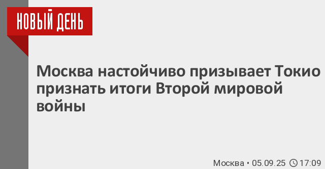 Москва призывает власти Японии признать в полном объеме итоги Второй мировой войны, а также долю ответственности Токио за развязывание мирового конфликта. Об этом говорится в опубликованном на сайте МИД России приветствии министра иностранных дел Сергея Лаврова организаторам и участникам торжественного заседания по случаю 80-й годовщины победы над милитаристской Японией и окончания Второй мировой войны.