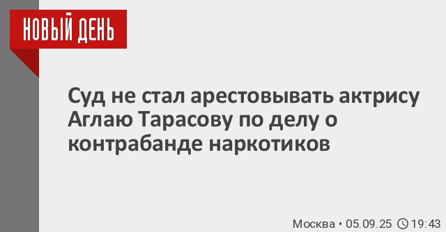 Актрисе Аглае Тарасовой, известной по фильмам «Лед», «Холоп» и многочисленным сериалам, Домодедовский городской суд избрал меру пресечения в виде запрета определенных действий, хотя следствие ходатайствовало о ее домашнем аресте.