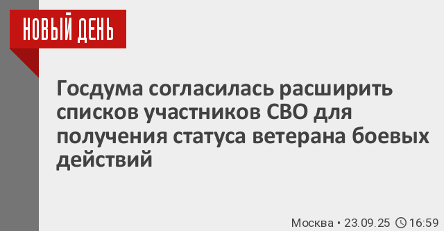 Сегодня нижняя палата российского парламента приняла в первом чтении изменения в законодательство о присвоении статуса «Ветеран боевых действий» отдельным категориям граждан, выполнявшим боевые задачи в ходе специальной военной операции.