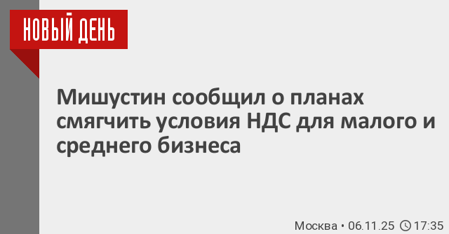 «Будут смягчены условия применения НДС малым и средним бизнесом. С поэтапным изменением порогов его уплаты: с 2026 года – при доходах в 20 млн рублей, с 2027 года – 15 млн, а с 2028 года – 10 млн», – уточнил глава правительства.