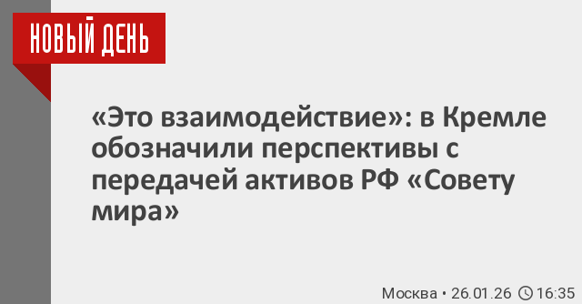 Передача $1 млрд замороженных активов России «Совету мира» открывает новые перспективы для взаимодействия. Об этом заявил пресс-секретарь президента РФ Дмитрий Песков.
