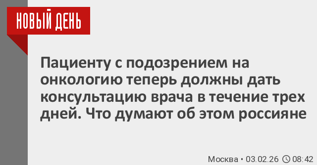 Правительство России утвердило норму, согласно которой пациент с подозрением на онкологию должны обеспечить консультацию врача в течение трех рабочих дней.