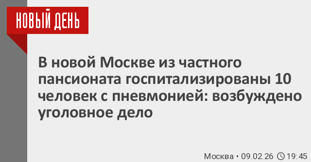 По данным следствия, не позднее 8 февраля постояльцы частного пансионата в новой Москве, доставлены в медицинские учреждения с предварительным диагнозом «внебольничная пневмония». На данный момент госпитализировано более 10 лиц.